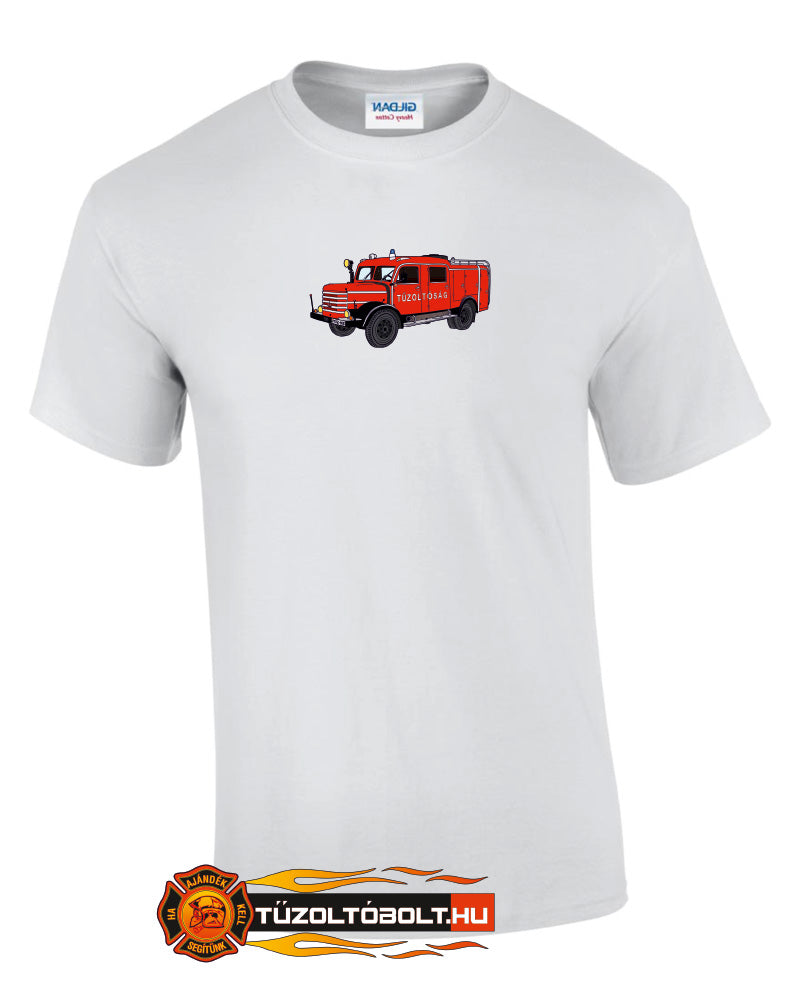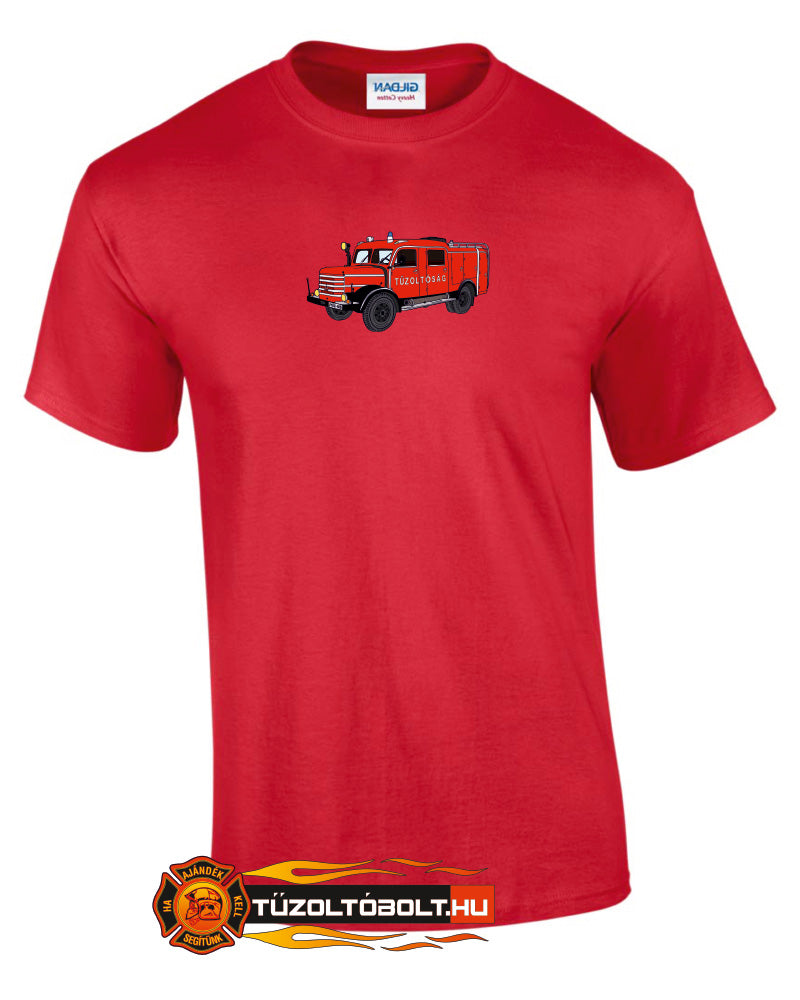 Pamut pólóra nyomtatott Csepel tűzoltóautó.