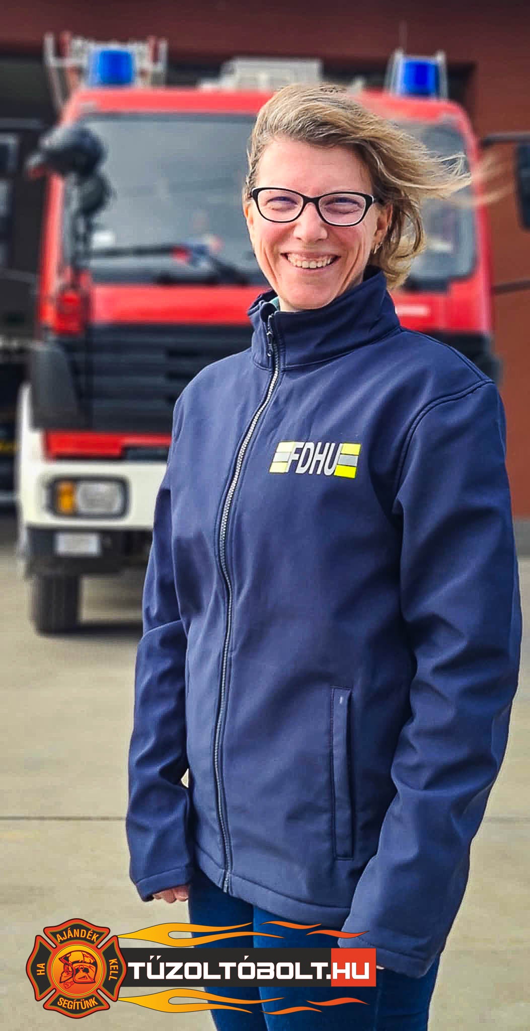Fényvisszaverő fólia felirattal ellátott FDHU / Fire Department Hungary kabát.